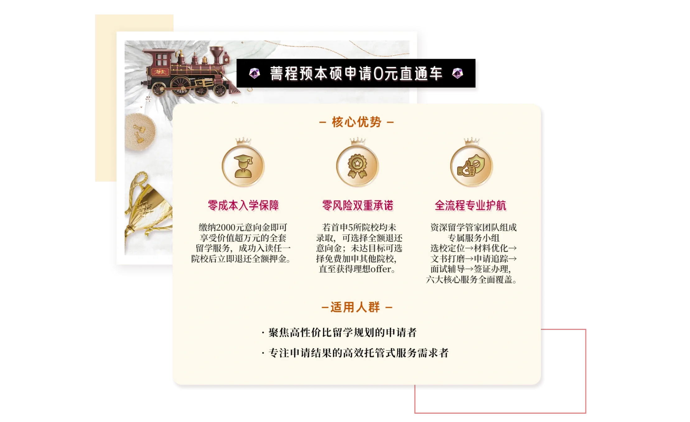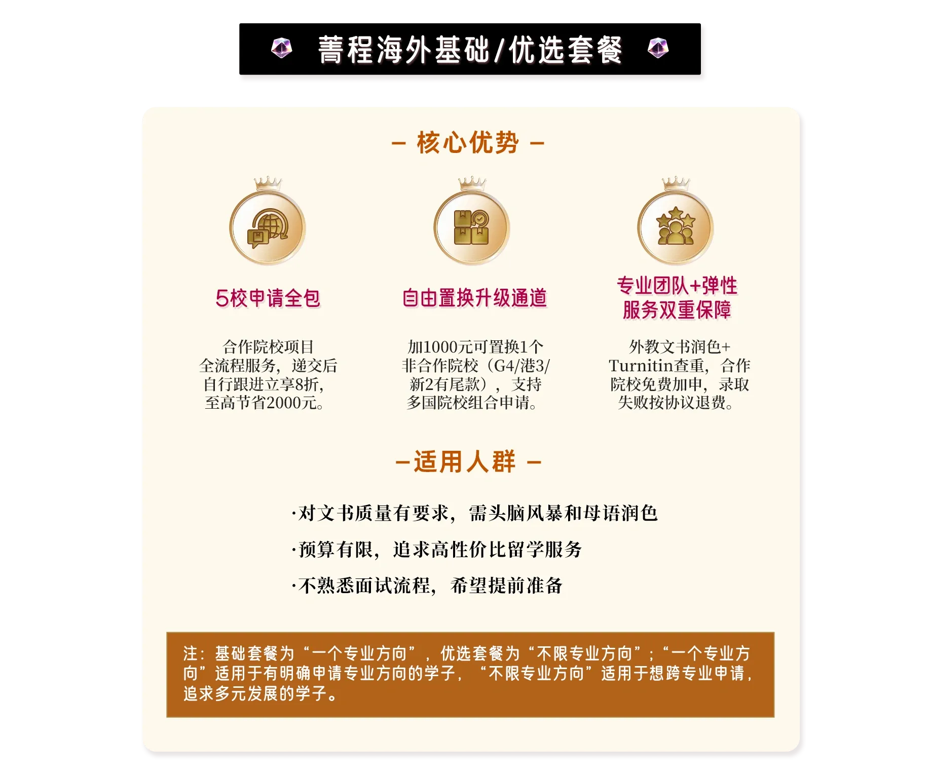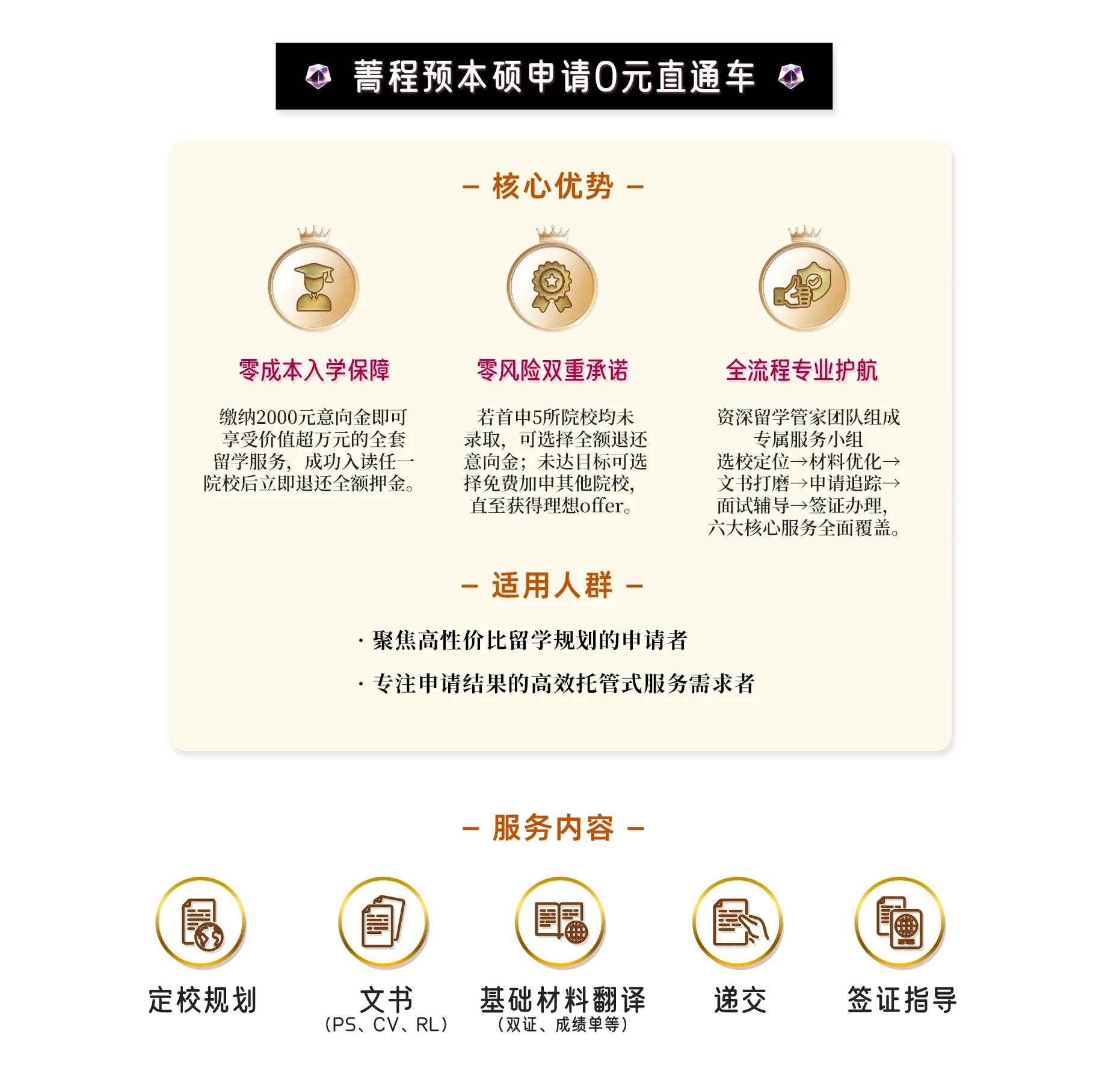 免费加申,保持未出结果项目数为5,直至录取,全程无忧。