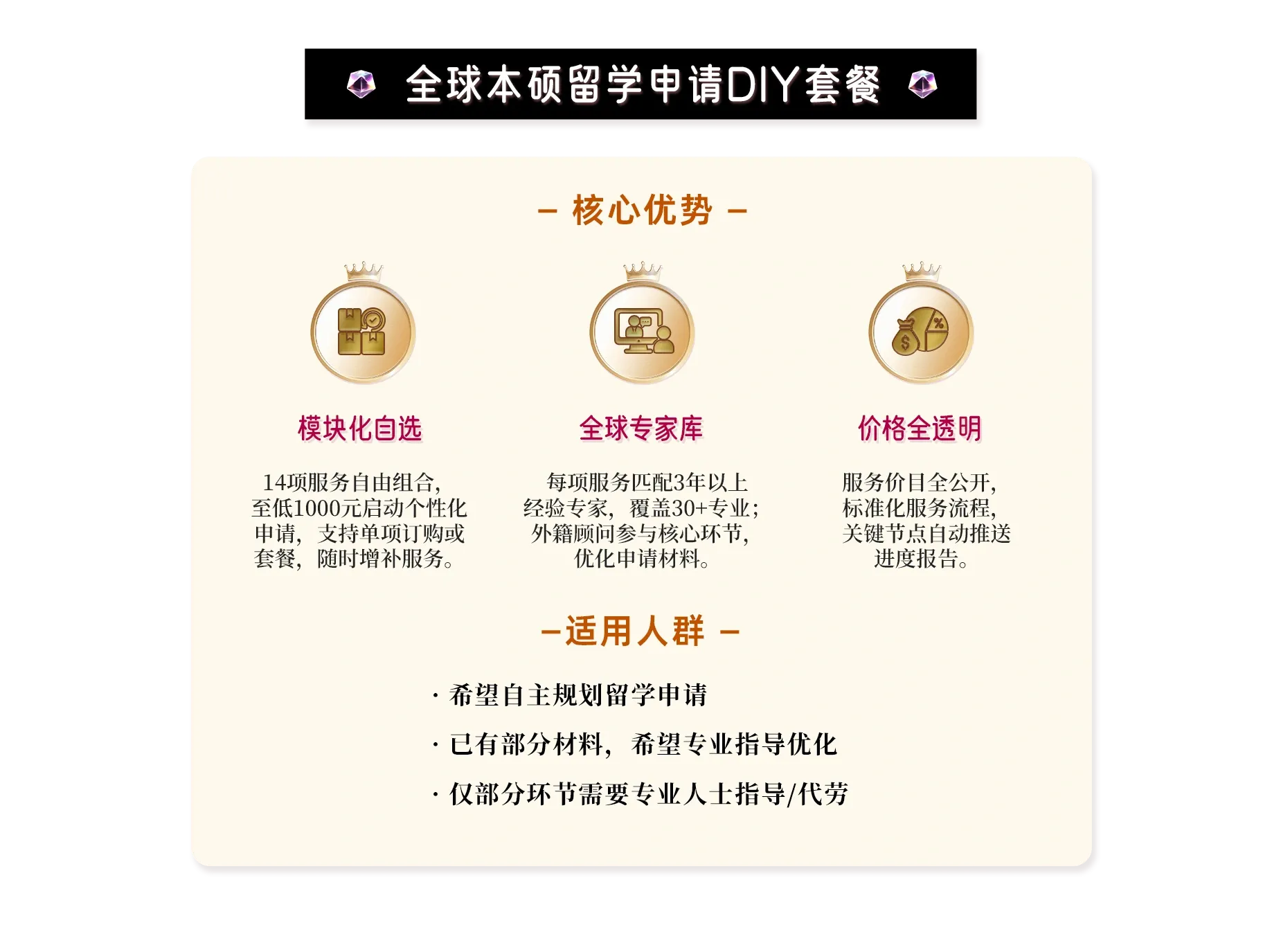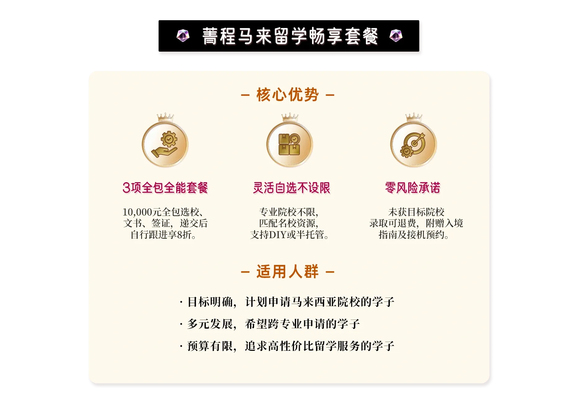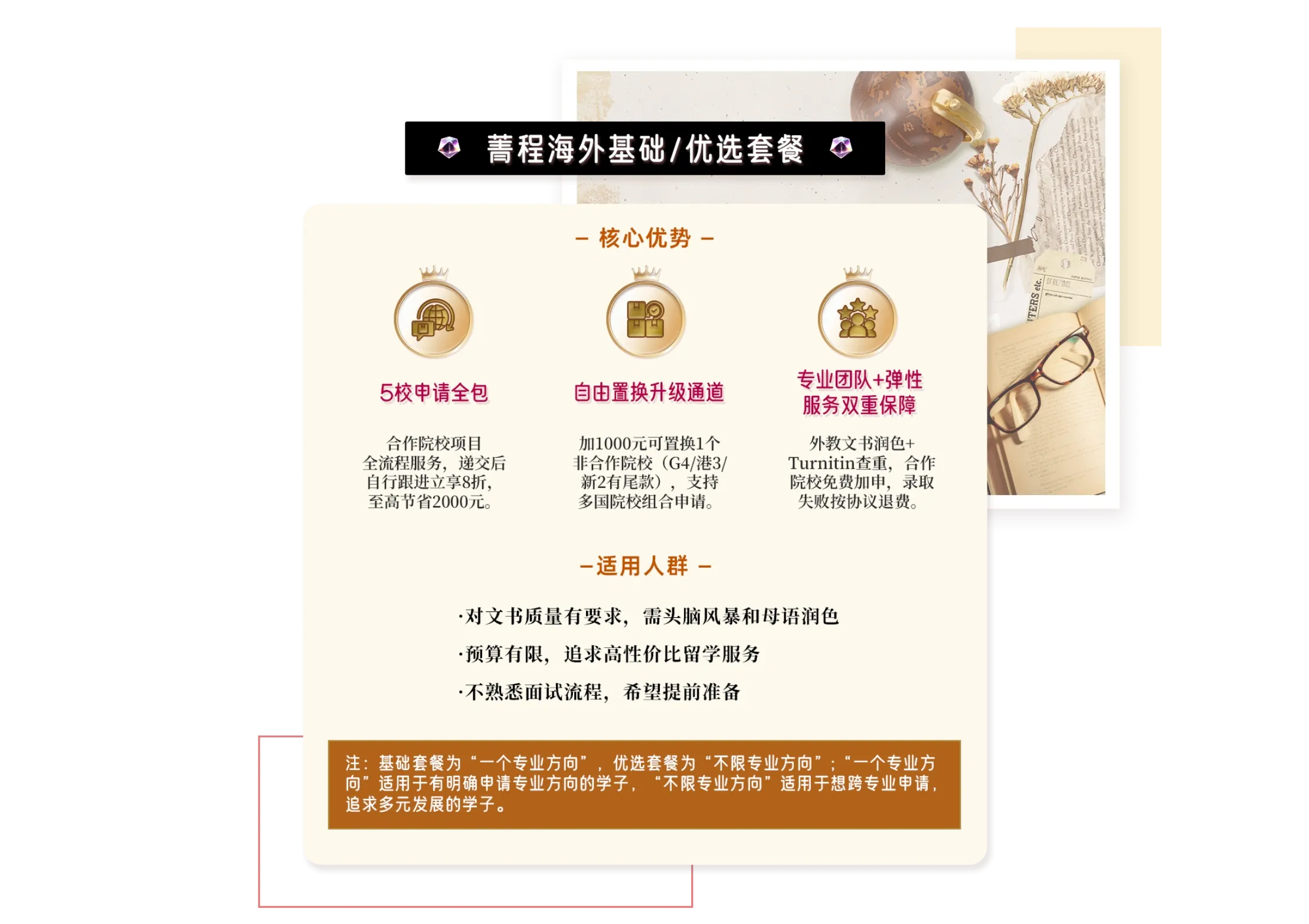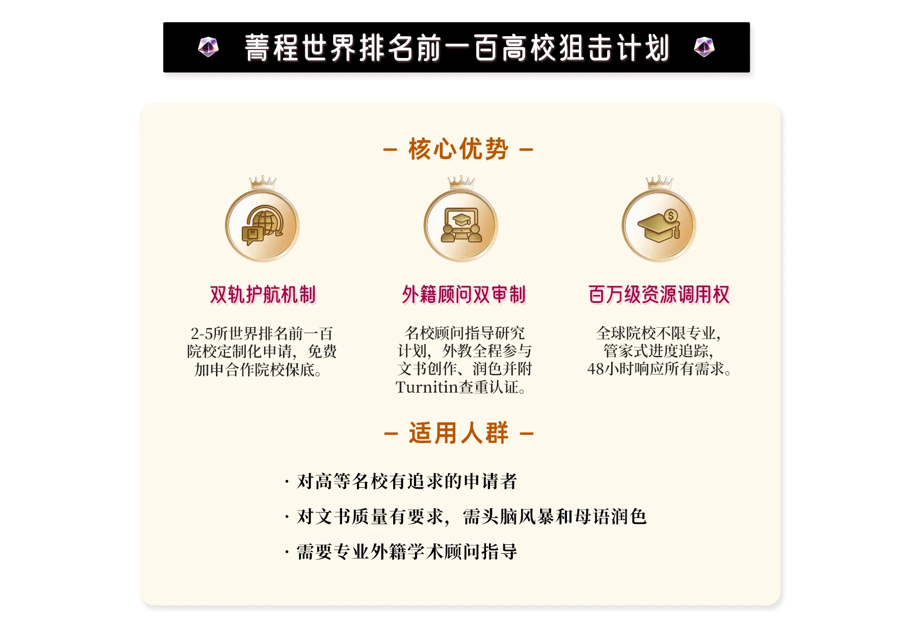 免费加申,保持未出结果项目数为5,直至录取,全程无忧。